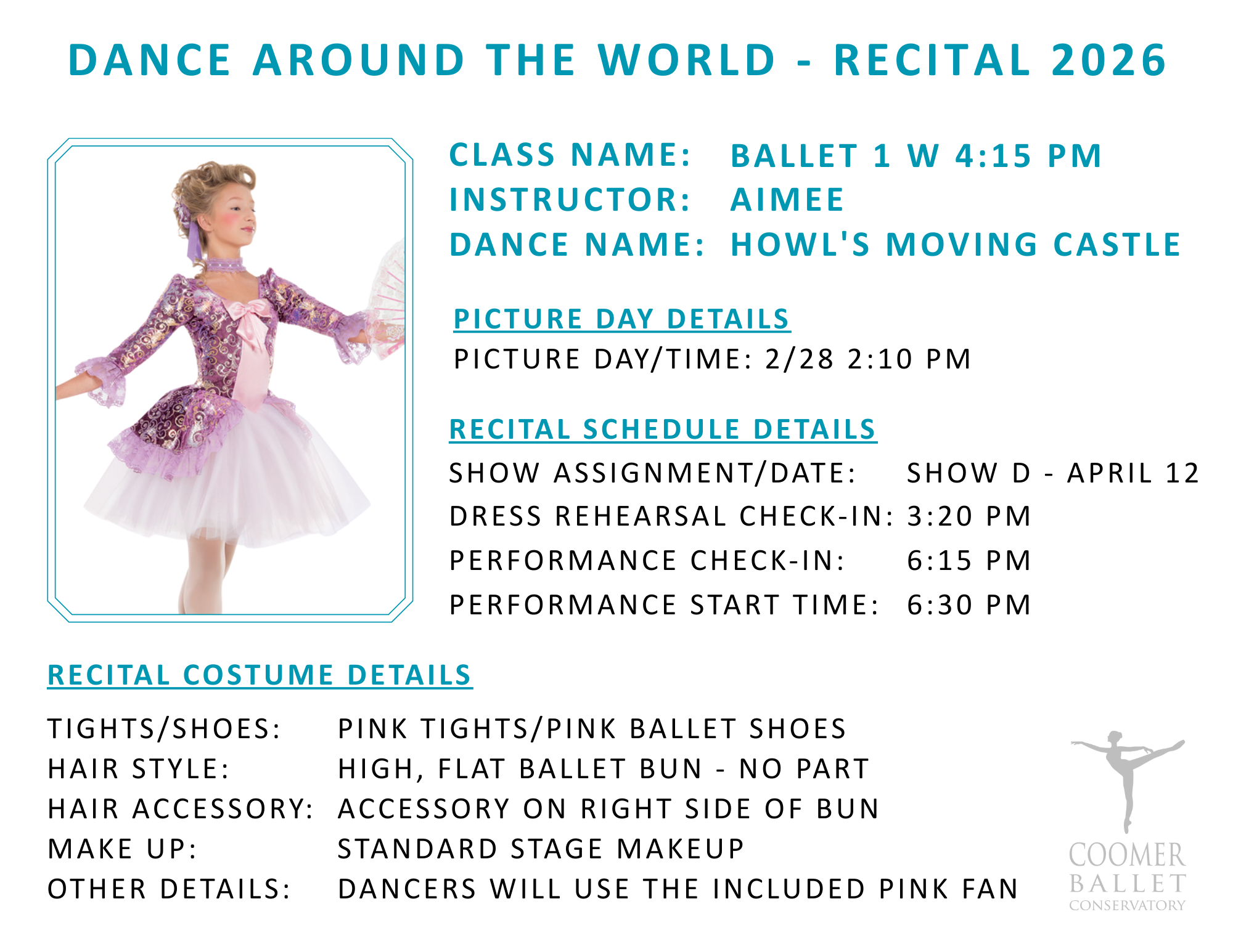 Recital 2026 Details by Class