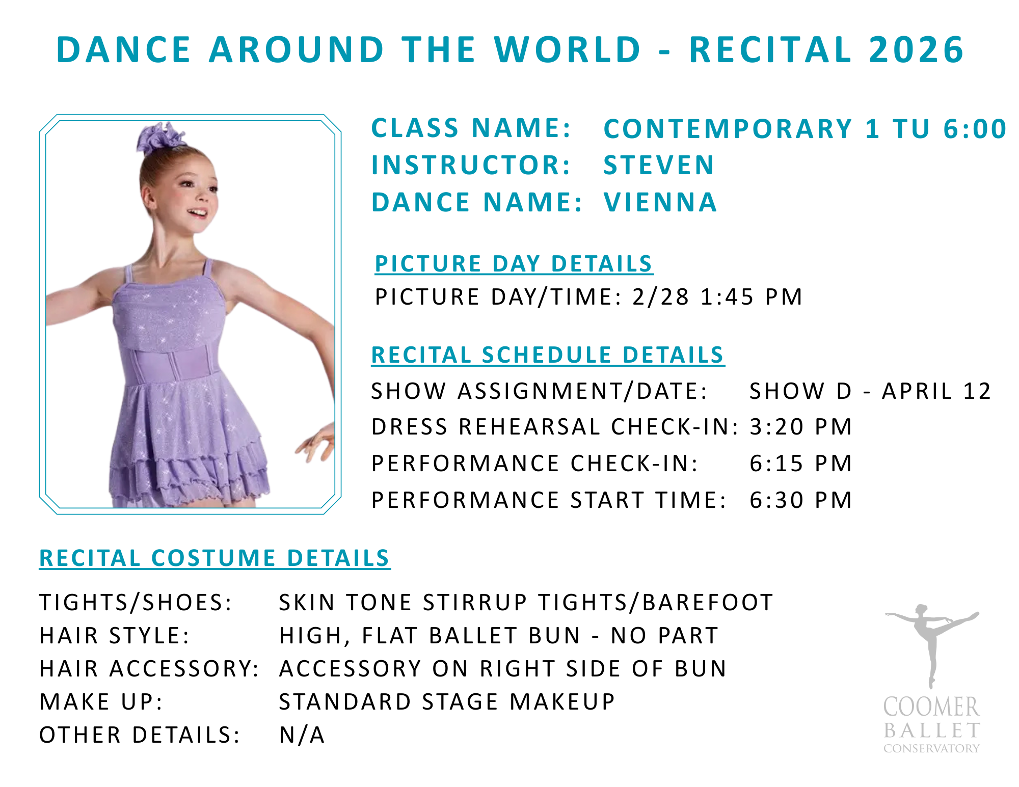 Recital 2026 Details by Class